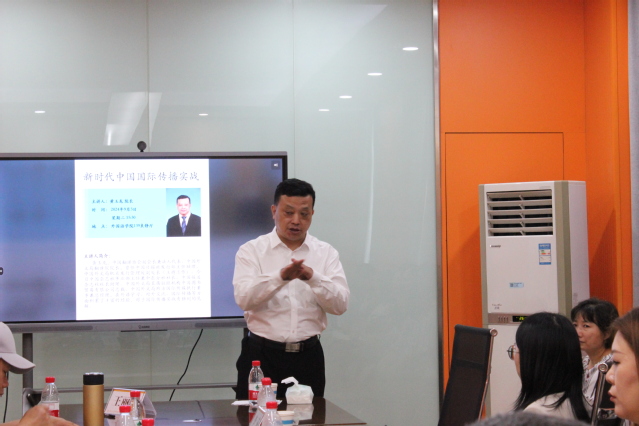 座谈结束后,黄玉龙做了题为“新时代中国国际传播实战”的专题讲座。黄玉龙在讲座中指出,中国对外传播需要经历从单一的宣传到多元化的国际传播,再到互动式交流的发展历程。他强调,在新时代背景下,外语能力是基础,专业知识是支撑,而深刻的文化底蕴则是成功的关键要素。黄玉龙以江西采茶戏欧洲巡演的成功案例,阐述了动态国际传播的重要性。