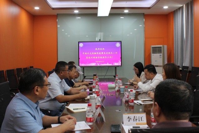 (通讯员 李春江李民)2024年9月3日,中国外文局翻译院院长、中国翻译协会副会长兼法人代表黄玉龙,中国外文局翻译院翻译研究部兼翻译专家工作部主任张雅明、翻译专家工作部干部李莎一行三人莅临伟德betvlctor1946体育调研。伟德betvlctor1946体育院长阎国栋、副院长马红旗、副院长李民、翻译系主任张智中、日语系主任韩立红、俄语系主任王丽丹、翻译系副主任李春江等参加座谈。