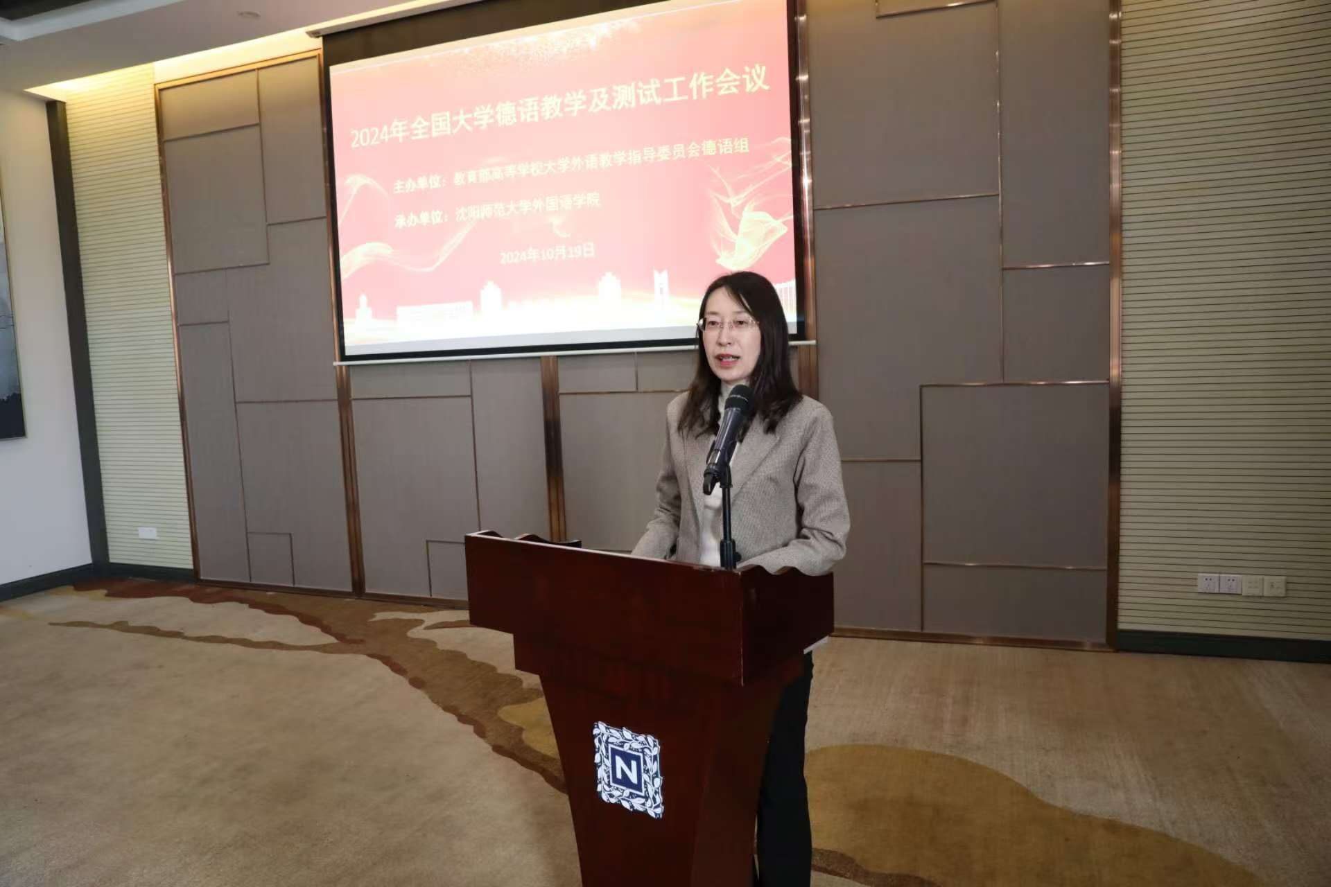 (通讯员 刘冠龙)10月18日至20日,2024年全国大学德语教学及测试工作会议在沈阳师范大学举行。沈阳师范大学党委常委、宣传部部长邵永运代表学校出席会议并致辞,教育部大学外语教学指导委员会德语组组长赵劲出席会议并讲话。教育部高等学校大学外语教学指导委员会德语组委员,来自全国31所院校的德语教师代表,高等教育出版社、外语教学与研究出版社、上海外语教育出版社、同济大学出版社等出版界代表出席会议。此次会议由教育部高等学校大学外语教学指导委员会德语组主办,沈阳师范大学伟德APP下载地址承办。