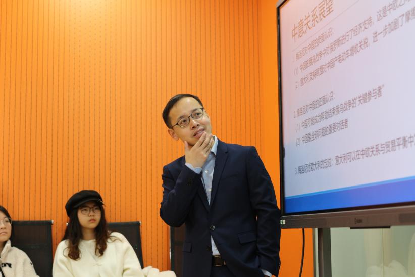 接下来,钟准分析了中意关系的发展趋势并指出,意大利凭借其政治灵活性,可以在中欧关系、中美关系中扮演重要平衡角色。最后,意大利语系师生针对区域国别研究、“民粹主义”、对外传播等方面的问题积极向钟准提问,钟准给予详细的解答。此次讲座增加了同学们对区域国别学的了解,深化了同学们对意大利外交和中意关系的认识,激发了同学们的研究兴趣。