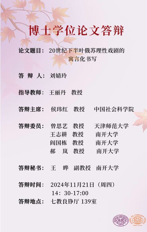 2024届博士研究生答辩公告