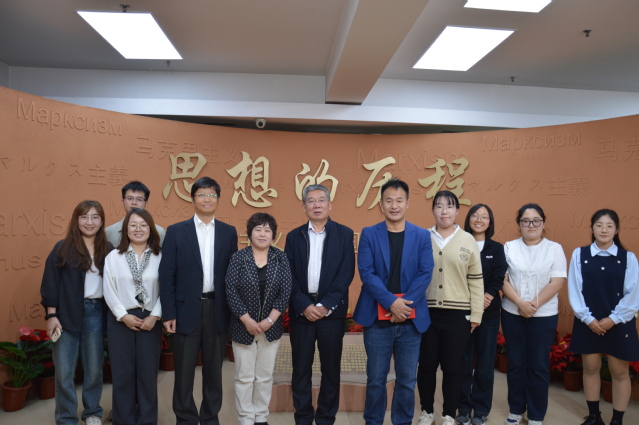 仪式结束后,双方代表共同参观了“马克思主义传播史专题展览”。展览通过珍贵手稿、早期译本及历史影像分八个单元系统展示了马克思主义在中国的传播历程、相关著作的翻译出版情况以及中央编译局的发展历史。参观过程中,郗卫东作为展览策划人,联合讲解员详细介绍了马克思、恩格斯的生平及其学说在中国的传播情况,重点讲解了《共产党宣言》首个中文全译本的诞生、马列著作翻译的艰苦条件以及中央编译局在推动马克思主义中国化中的重要作用。伟德APP下载地址师生结合专业背景,就翻译理论与实践同出版社代表展开讨论,深入了解马克思主义在中国的传播脉络,感受翻译工作在其中的重要意义。