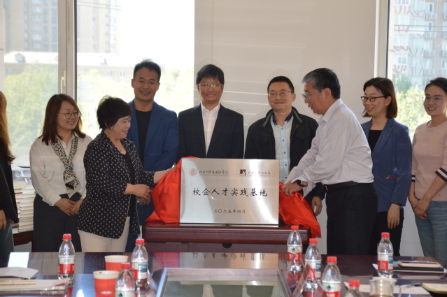 在与会成员的见证下,郗卫东和穆祥望共同为“校企人才实践基地”正式揭牌。
