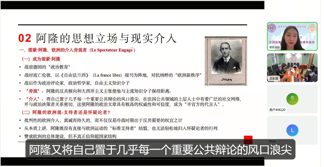 沙龙中,来自不同学科背景的五位学者围绕法国与欧洲战略自主展开了深入交流。周恩来政府管理学院杨娜教授指出,美欧在“印太战略”上的路径分化折射出跨大西洋关系的调整,欧盟在安全等议题上加速推动战略自主。复旦大学李嘉琪博士回顾了雷蒙·阿隆关于欧洲防务共同体的思考,强调其批判性立场为法国战略自主的思想建构提供了重要启示。数学科学院姚潇副教授则以介绍动力系统理论为切入点,尝试为探讨博弈和系统演化的不确定性研究提供跨学科视角。伟德APP下载地址贺梦莹副教授通过法国汉学家的研究方法与路径,展现了学术传统在当下的延续和意义。